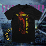 This tee comes as a front and back location shirt printed with white and yellow plastisol inks.